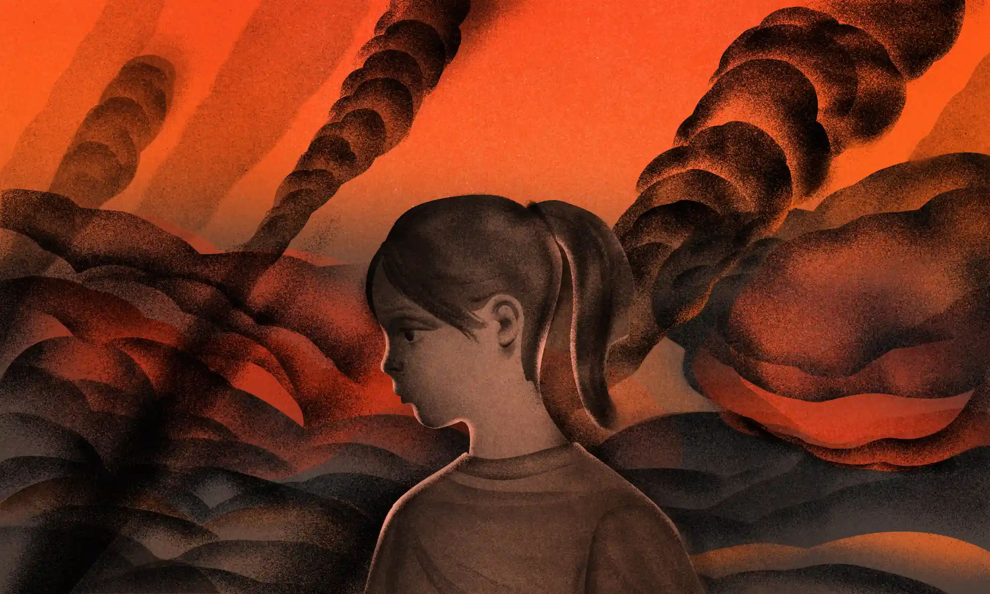 To Katya, aged seven, in a bomb shelter in Kyiv. Illustration by Masha Foya, who is based in Kyiv.